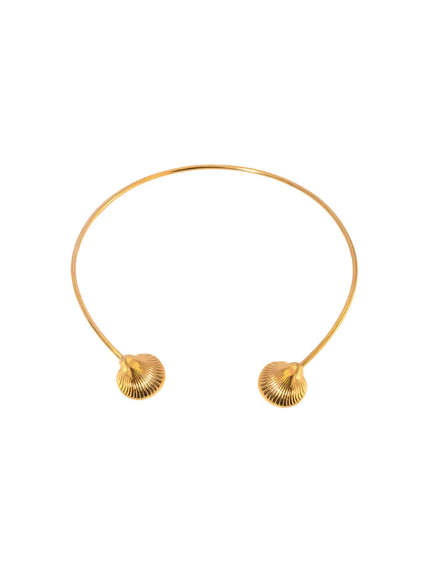 Stylish stainless steel choker with a gold finish, featuring twin seashell accents for a chic coastal touch